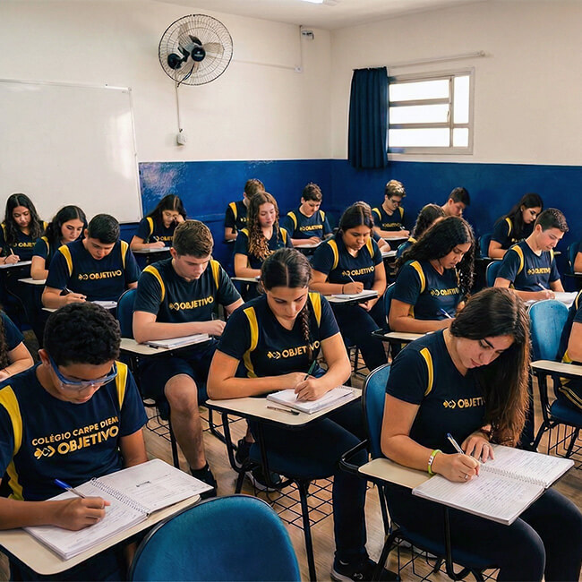 Os alunos do Ensino Médio participam de simulados preparatórios que reforçam o aprendizado e aprimoram o desempenho em vestibulares e no Enem. A atividade estimula a autoconfiança e o domínio dos conteúdos de forma prática e direcionada.