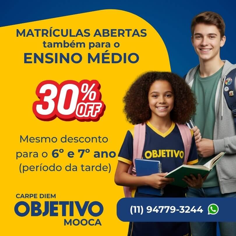 Temos algumas vagas disponíveis em condições especiais para o Ensino Médio e para as turmas do 6º e 7º ano para o período da tarde.